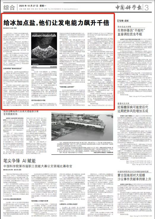【中国科学报】给冰加点盐,他们让发电能力飙升千倍
