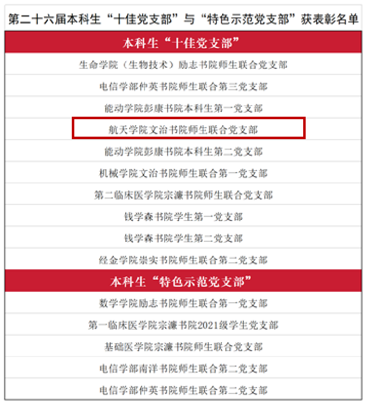 第二十六届本科生“十佳党支部”评选结果揭晓,航天学院文治书院师生联合党支部凭借扎实的支部建设、过硬的工作成效和突出的先锋作用,获评校“十佳党支部”。这是该支部自2023年、2024年连续两年获校“十佳党支部”后,再获此殊荣,充分展现了支部强大的凝聚力、战斗力和新时代做爱视频